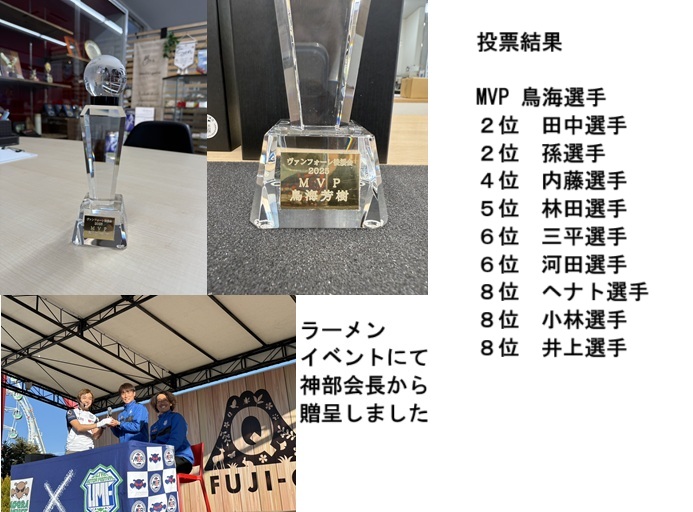 今シーズン最も活躍した選手に贈られるヴァンフォーレ後援会MVPは